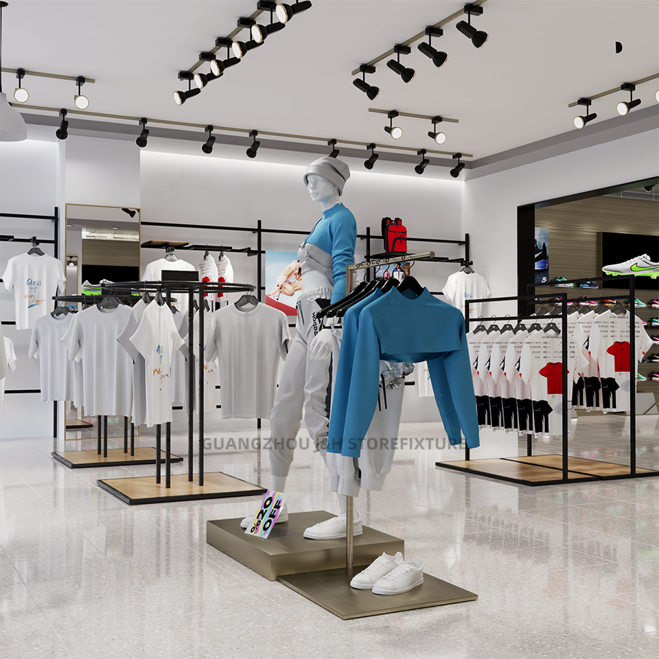 Sport Garment Shop Interior Design Sport Clothing Store Display Furniture For Sport Clothes Shoe Display Rack Stand Shelves Oem