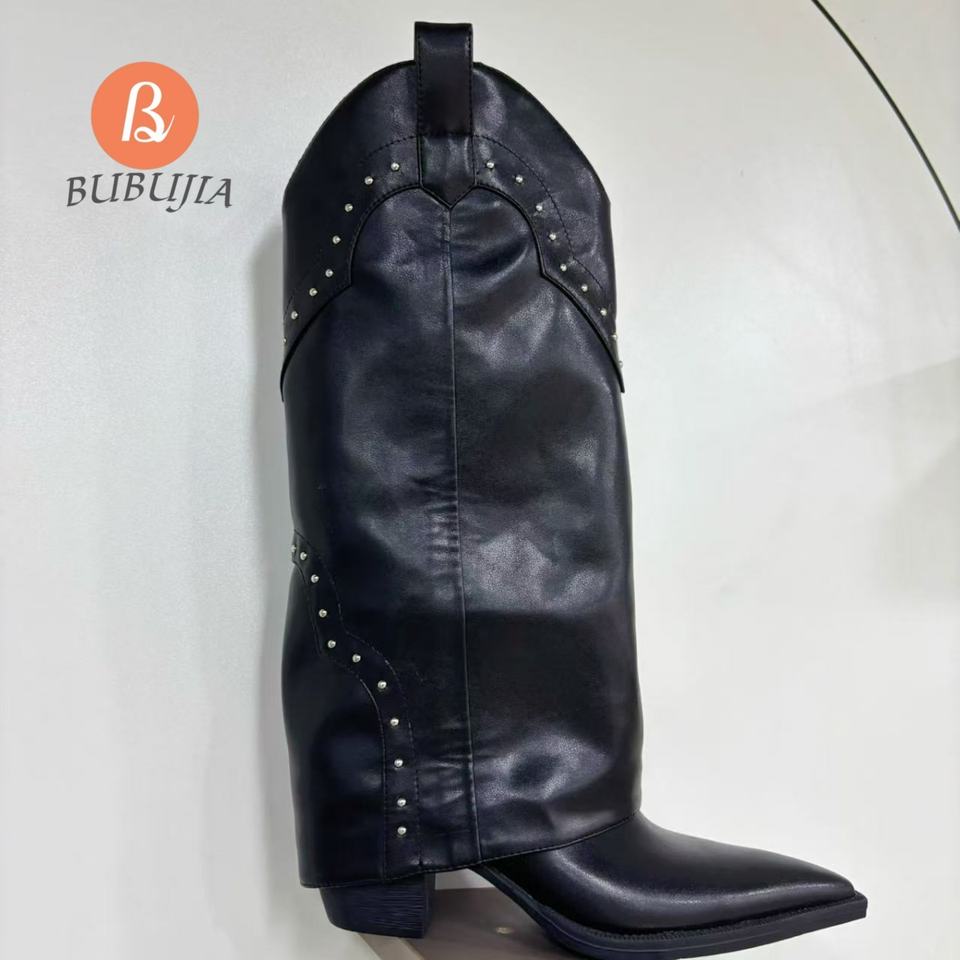 Factory Direct Wholesale Vintage Boots Women Western Cowboy Boots Casual Shoes Decorative Rivets Designer Knee-high Boots Women