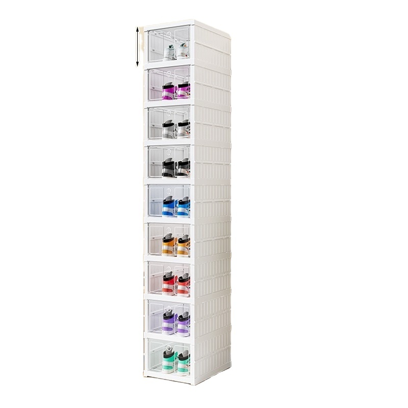 China Supplier 9-tier Plastic Stackable Collapsible Sneakers Folding Shoe Container Organizer Case Foldable Shoes Storage Box