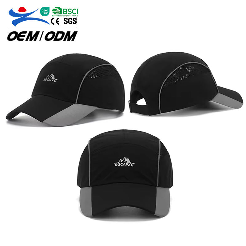 Rongguang High Quality Quick Dry Running Sports Hats Gray Black Custom Cheap Baseball Cap With Breathable Mesh