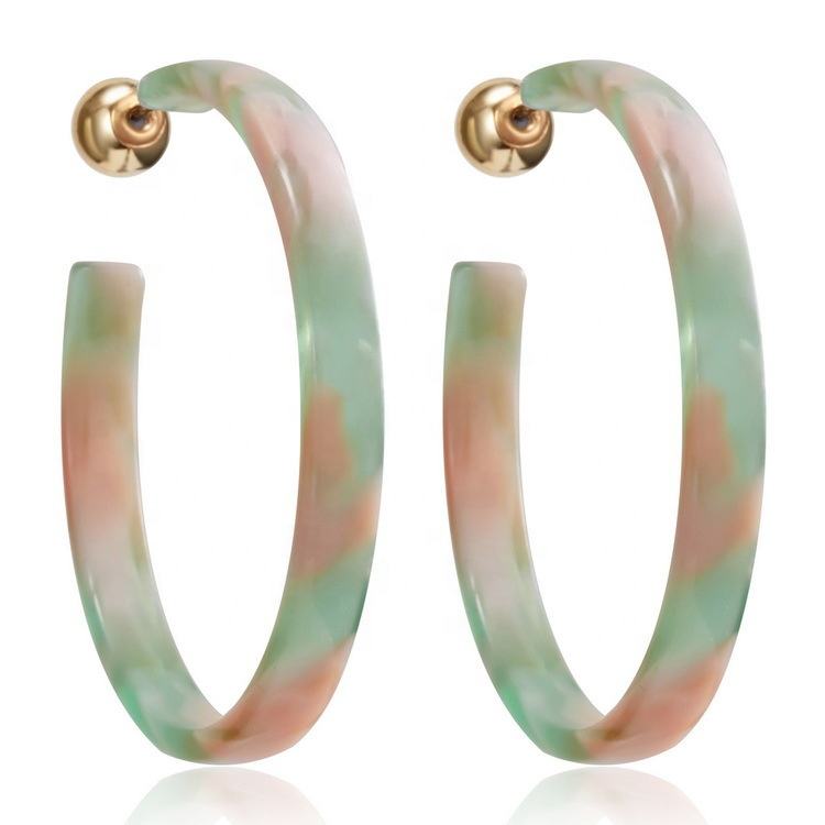 Wholesale Designer Inspired Jewelry Women Minimalist Resin Acrylic Geometric C-shaped Big Hoop Stud Earrings