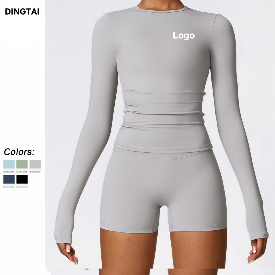 Spring Summer New Fitness Women's Stretch Leisure Sports T-shirt Long-sleeved Quick-drying Breathable Slim Version Of Yoga Tops