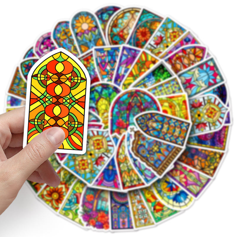 50pcs Retro Painted Art Stained Glass Cartoon Sticker Packaging Logo Vinyl Private Label Sticker Custom