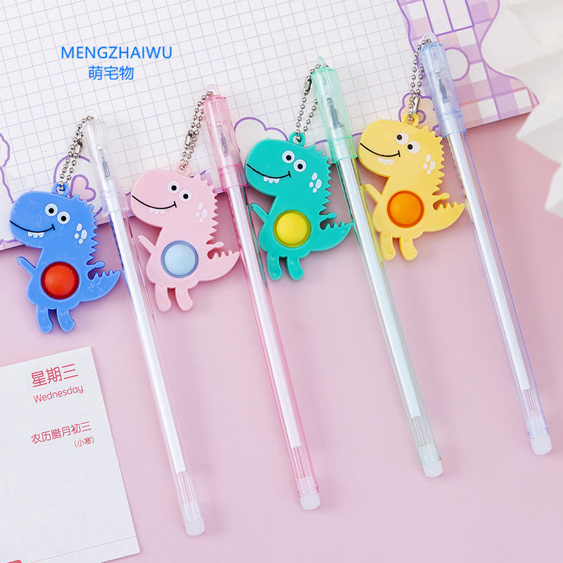 No Stock China School Stationery Export Black Gel Ink Pen 0.5 Mm Cartoon Little Dinosaur Pendant Decompress Cute Gel Pen Kawaii