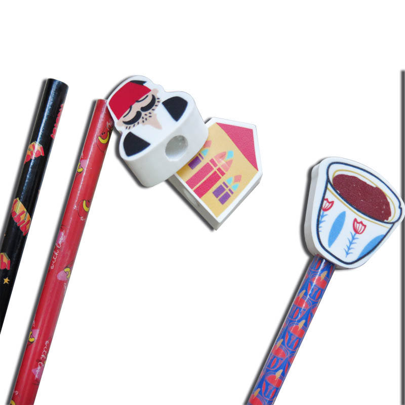 Promotional School Kids Junior Students Wooden Hb Pencil With Eraser Set,Low Moq Stationery Cute Eraser Toppers Custom Designs