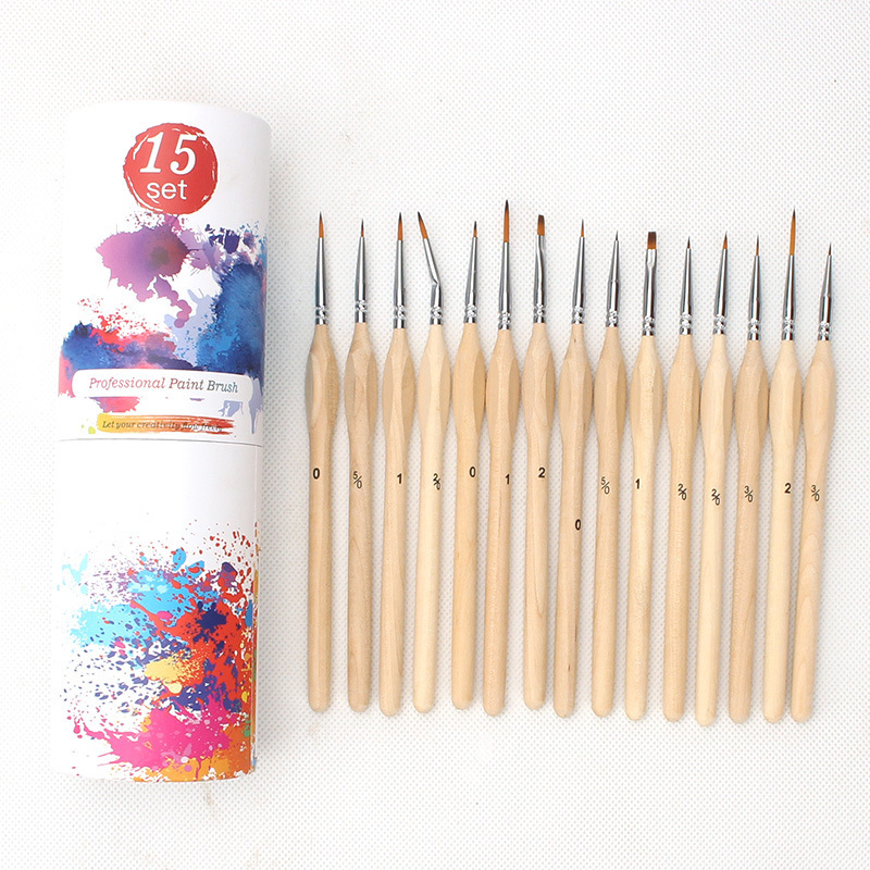 15pcs Diy Detail Paint Brush Set Wooden Handle Synthetic Hair Fine Tip Liner Brushes Acrylic Watercolor Oil Gouache Nail Art