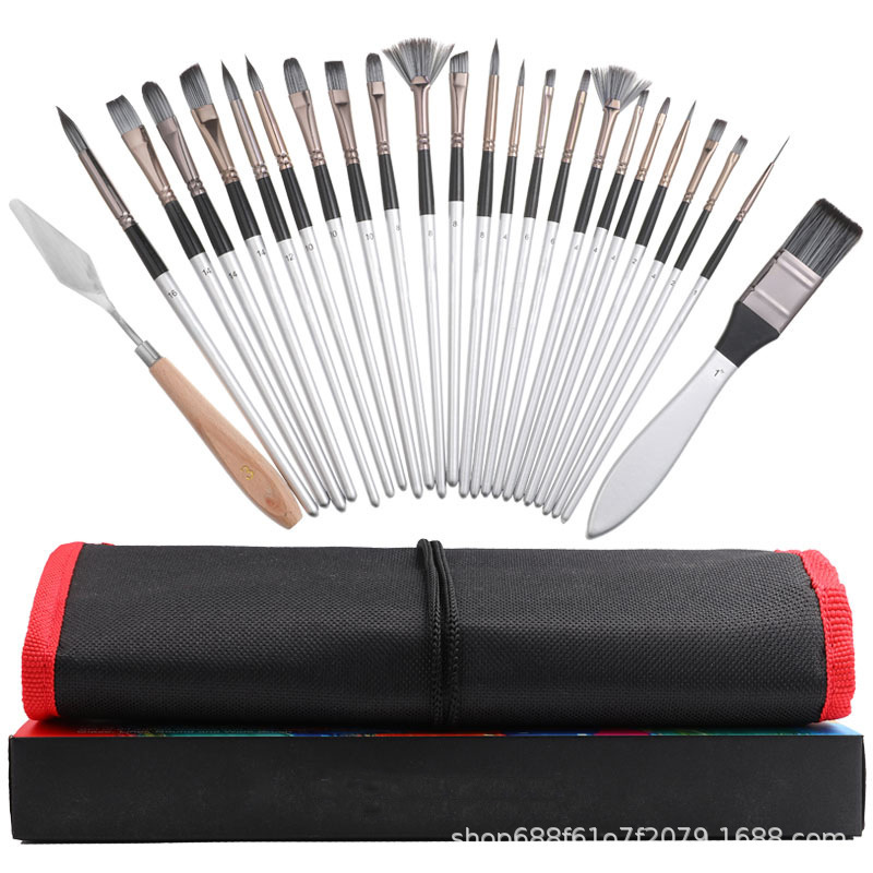 24-piece Hot Selling Nylon & Synthetic Hair Paint Brush Set Direct Factory Sale Wood Handle Canvas Oil Watercolor Brushes