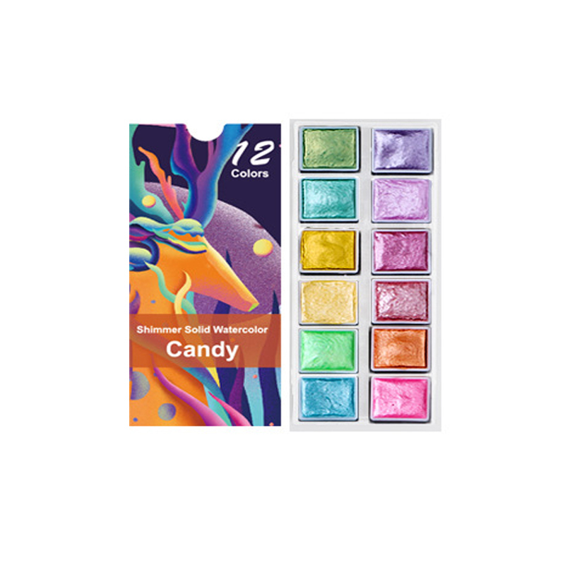 High Quality 6/12 Colors Shimmer Solid Watercolor Glitter Paint Set Pearlescent Starry Metallic Pigment For Paper