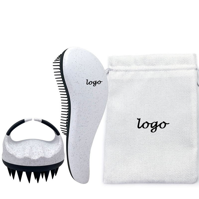 2pcs Manual Silicone Scalp Massager Hair Brush Wheat Straw Hair Growth Shampoo Brush With Drawstring Bag Laser Type