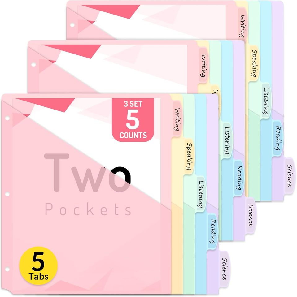 Hot Selling 15 Count Premium Quality 3 Ring Binder Pockets With 5 Tabs Dividers Box Pattern Subject Divider Pocket