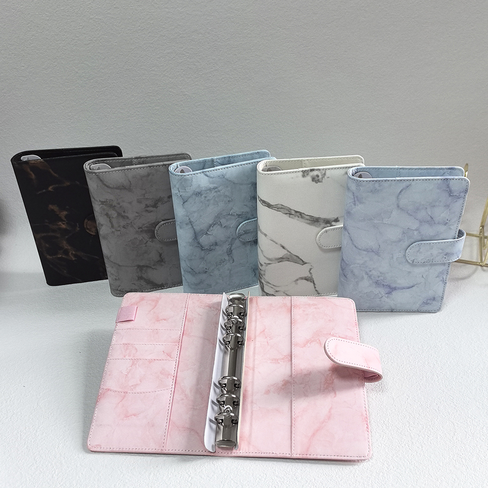 Wholesale Spot High Quality Promotional Factory Stock New Purple Marble Ring Binder A6 Leather Organizer Budget Binders