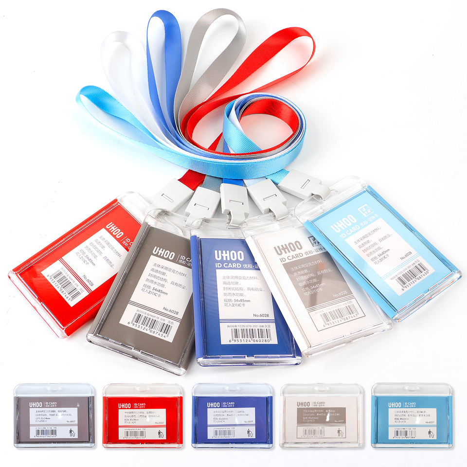 Uhoo 6027 High Quality Acrylic Horizontal Plastic Id Card Holder Waterproof Name Badge Business Card Holder For Doctors Nurse