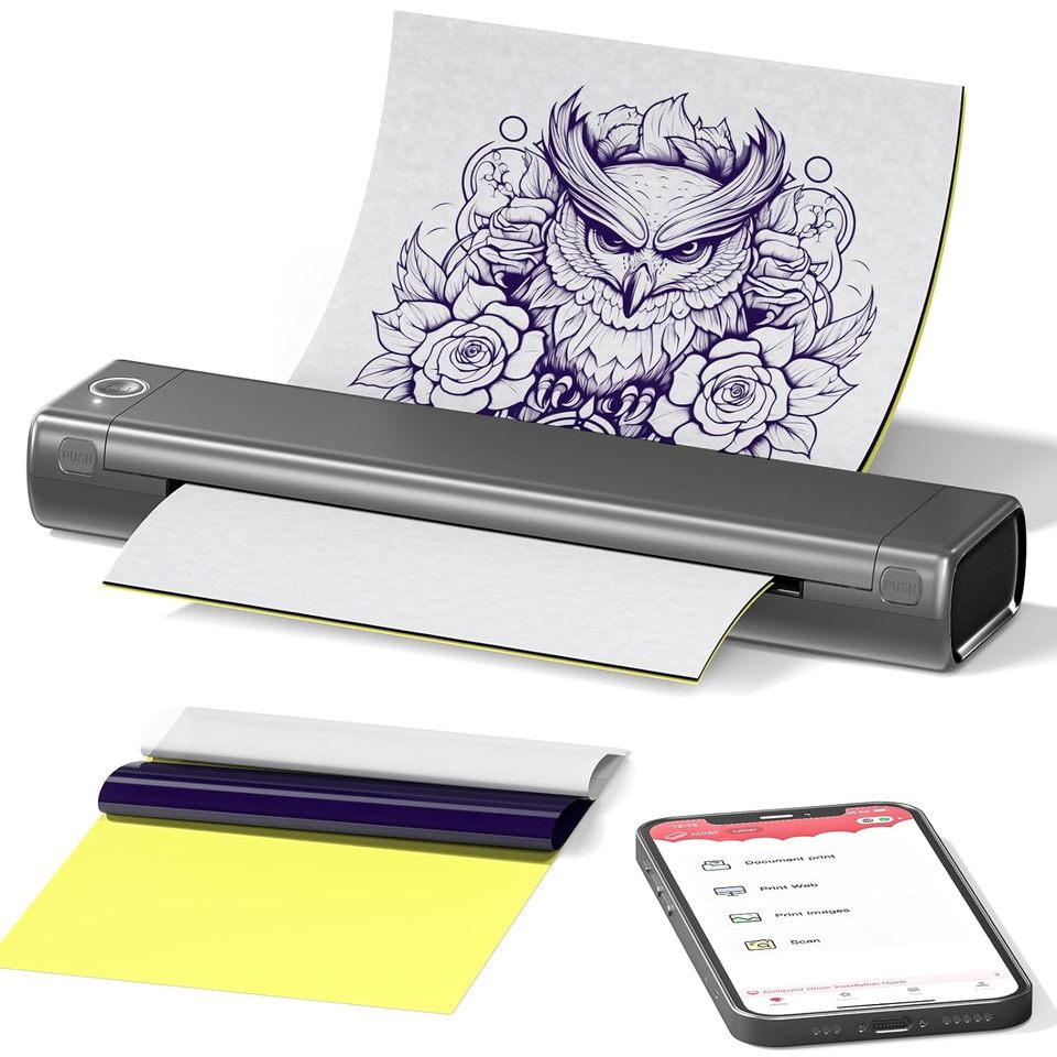 Phomemo M08f Portable Wireless Tattoo Stencil Printer Thermal Inkless Tattoo Stencil Machine With 10pcs Transfer Paper