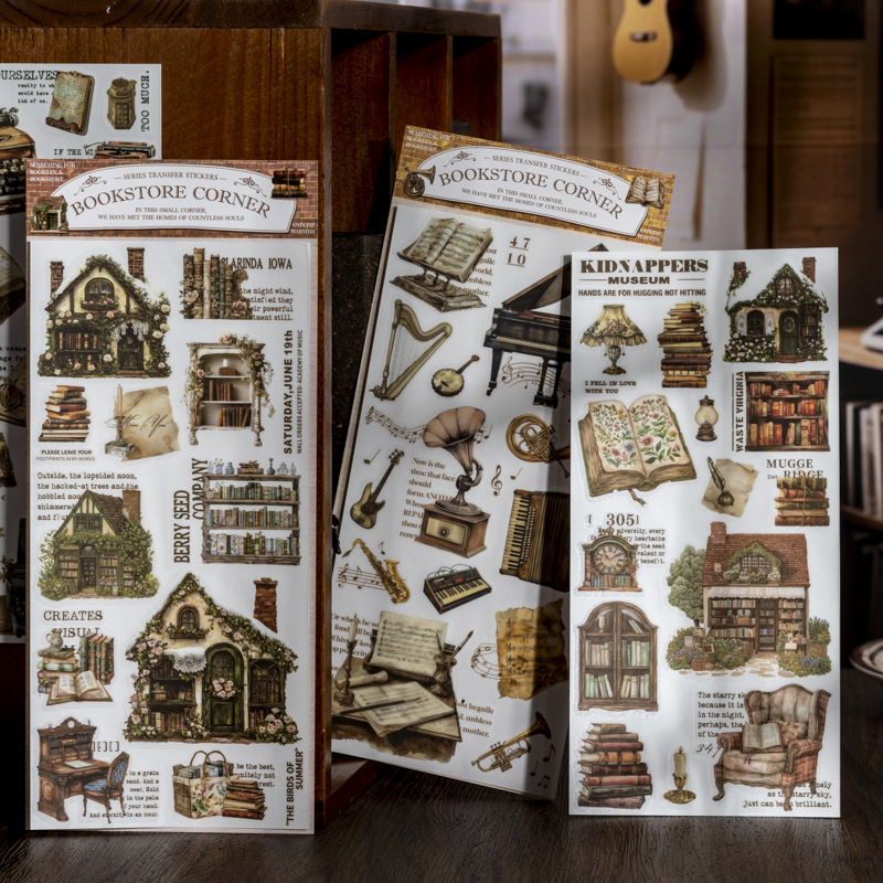 2pcs/pack Pvc Aquascape Transfer Stickers Bookstore Corner Series Light Retro Handbook Bottoming Stickers