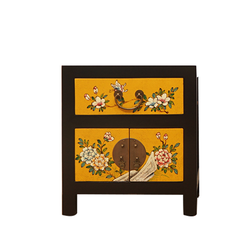 Traditional Antique Chinese-style Hand Painted Bedroom Nightstand Elm Wood Living Room Cabinet Furniture For Home Or Hotel Use