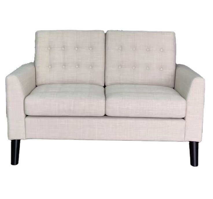 Inventory Clearance Overstock Furniture American Upholstered Two Seat Tufted Beige Linen Fabric Loveseat Stock Sofa