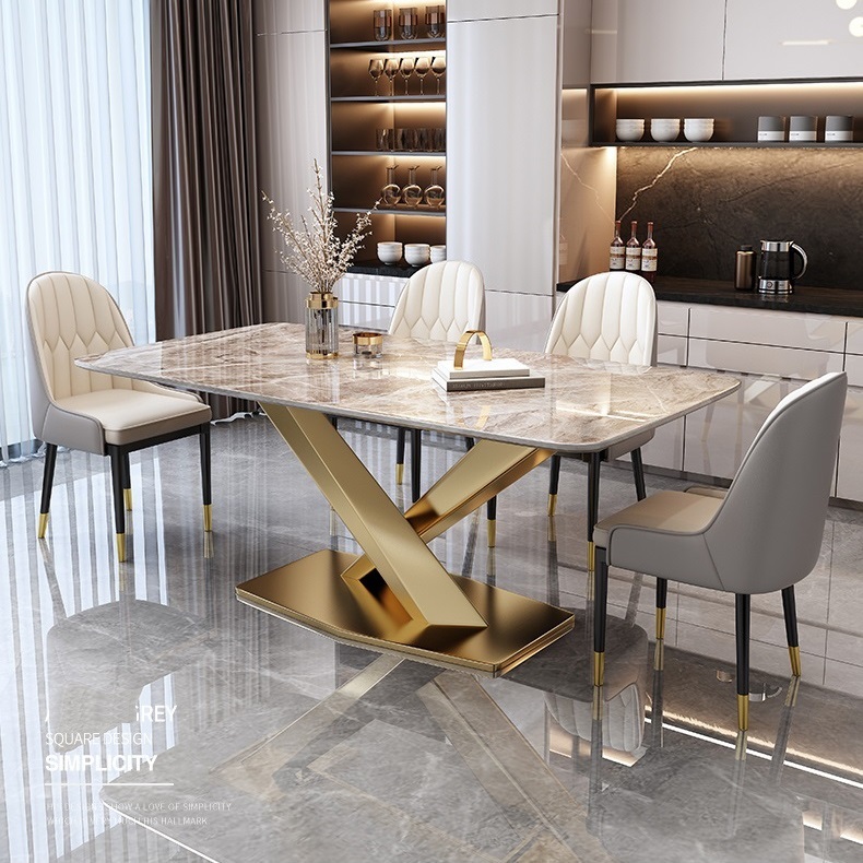 Simple Modern Rectangular Rock Plate Dining Table Light Luxury Household Type High-grade Leisure Dining Table And Chair
