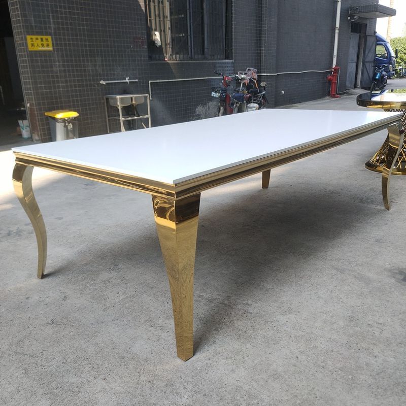 Events Wedding Party Gold Steel White Mdf Top Wedding Dining Table
