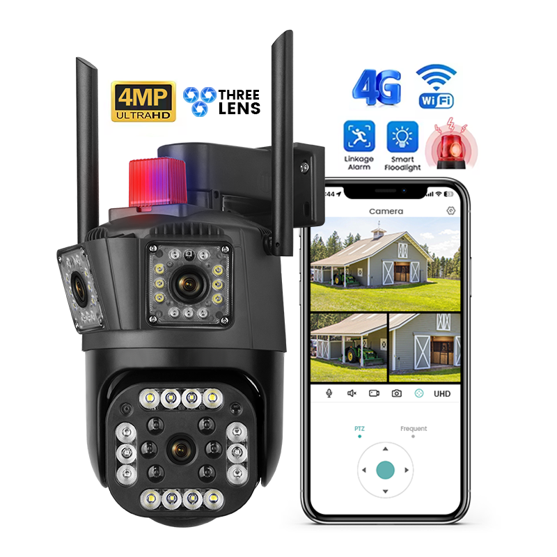 | Function | Alarm I/O, Reset, Wide Angle, Built-In Siren, Remote Monitoring View, Full Color Night Vision, Auto Tracking, Human Detection, Three Lens, Sound & Light Alarm, Linkage Alarm, Floodlight Alarm Siren, Red Blue Light Alarm |