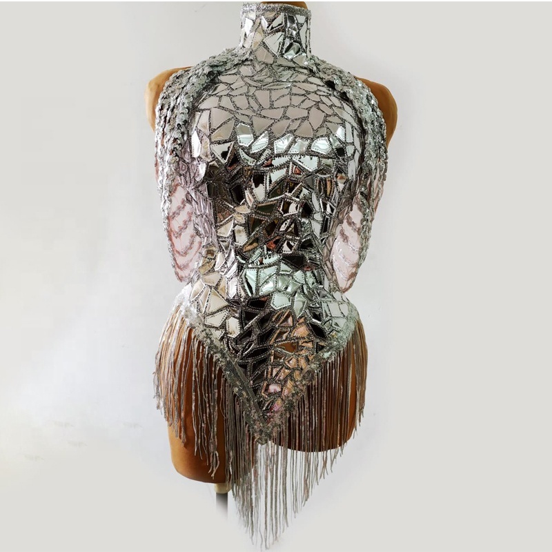 Silver Sequins Leotard With Rhinestones Sexy Dance Bodysuit For Birthday Singer Stage Performance Ballroom Wear Costume
