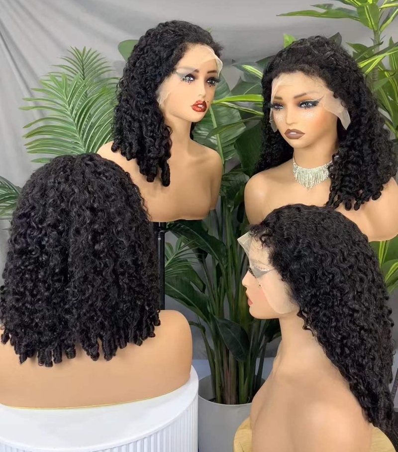 Top Premium Quality 12a Double Drawn Raw Human Hair Wig Pixie Curly 250% Density 13x4 Glueless Lace Front Wigs For Black Women