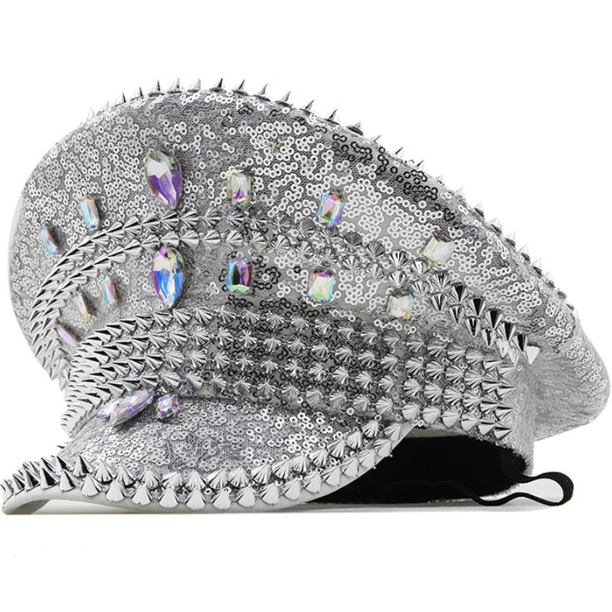 New Handmade Steampunk Captain Hats Lady Sergeant Bridal Hat Women's Rhinestone Carnival Decorative Caps For Wedding Festival