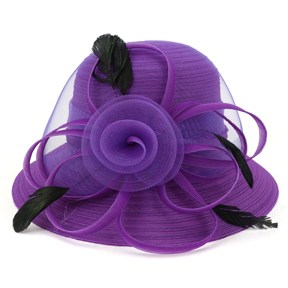 X1625 Spring Mesh Ruffles Flower Organza Sequins Hat Women Kentucky Derby Wedding Lace Church Hat