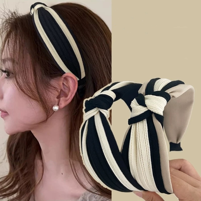 Muju High Touch Black White Striped Fabric Non-slip Cross Bow Women Headband Vintage Top Hair Accessories Anti-age Temperament
