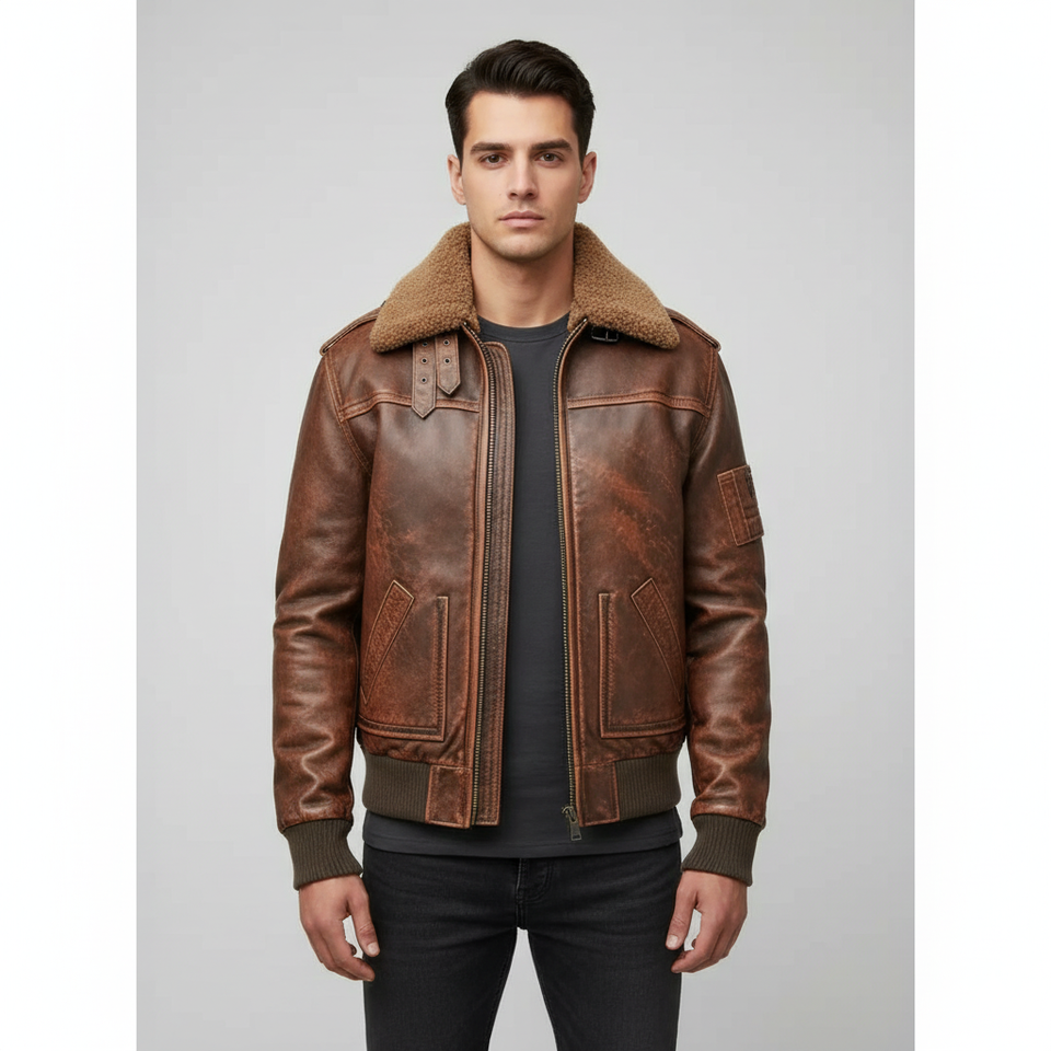 Full Grain Retro Bomber Jacket Handmade Vintage Leather Outerwear Ready To Ship Fur Sheep Skin Leather Jacket