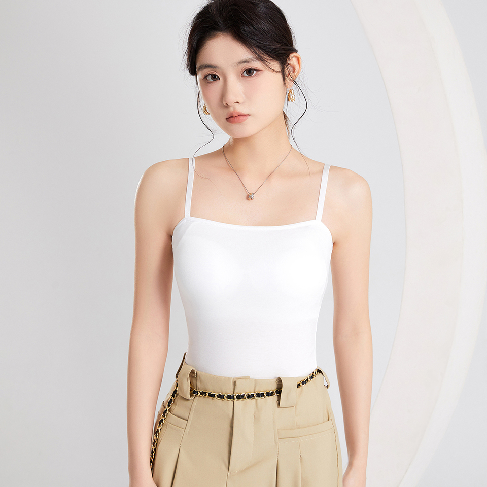 Summer Women's Knitted Camisole Built-in Bra Lightweight Base Layer Off-shoulder Beauty Back Strapless Padded Top Outerwear