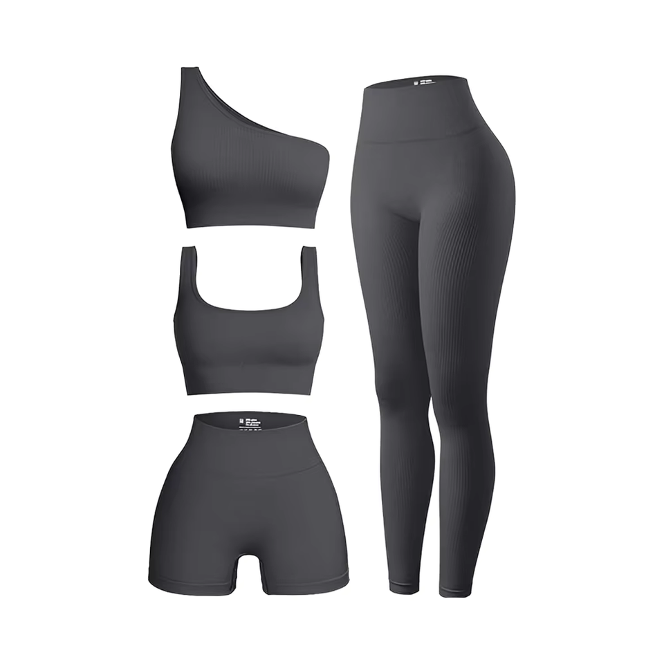 Oem Odm Women's Workout Set 4 Piece Ribbed Seamless Activewear Breathable Yoga Gym Outfits Plus Size Design Digital Front