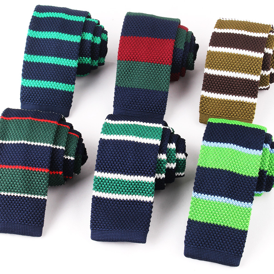 Wholesale Bulk Slim Narrow Green Men Knitted Tie Striped Knit Ties For Men