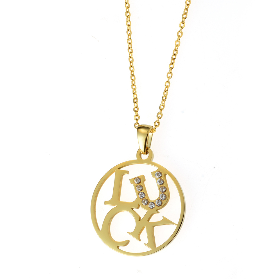 Wholesale Fashion Women's Necklace With Luck Letter Pendant Trendy Stainless Steel Chains Gold Plated Ready To Ship