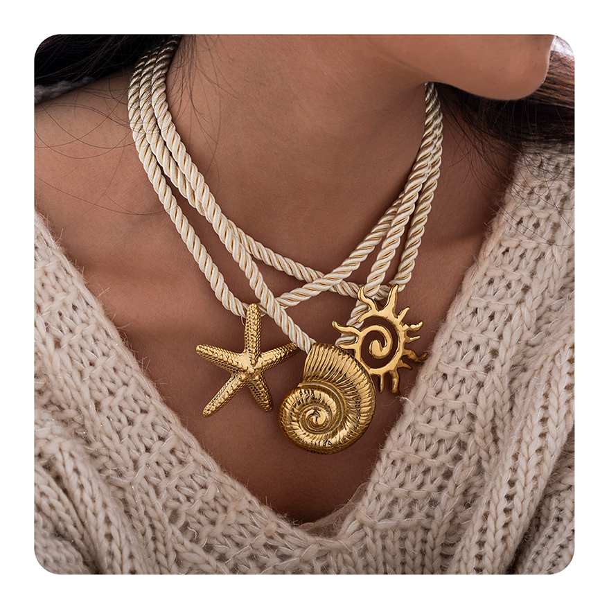 2025 Bohemia Summer 18k Pvd Gold Plated 316l Stainless Steel Shell Charms Necklace Trendy Link Chain For Women's Beach Vacation