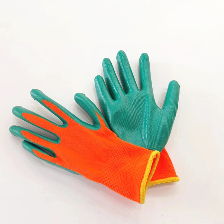 Wholesale Cheap 13g Polyester Nylon Shell Nitrile Coated Work Safety Construction Gloves Low Moq Custom Logo Guantes De Nitrilo