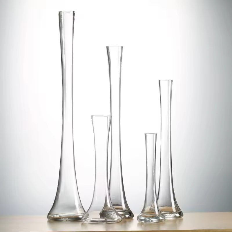 Clear Fine Tall Glass Vase Wedding Table Top Long Flower Vase For Wedding Party Banquet Events Centerpiece Decoration