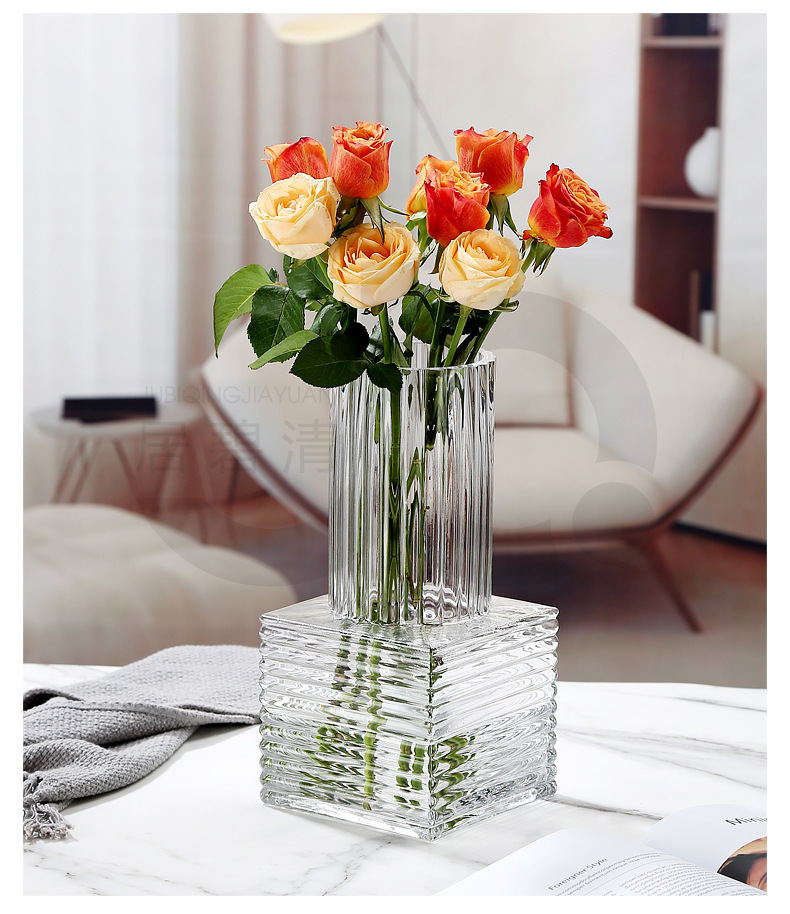 Modern Art Deco Style Glass Vase Premium Feeling Simple City Lights Design Lily Rose Hydroponic Bottle For Desktop Arrangement