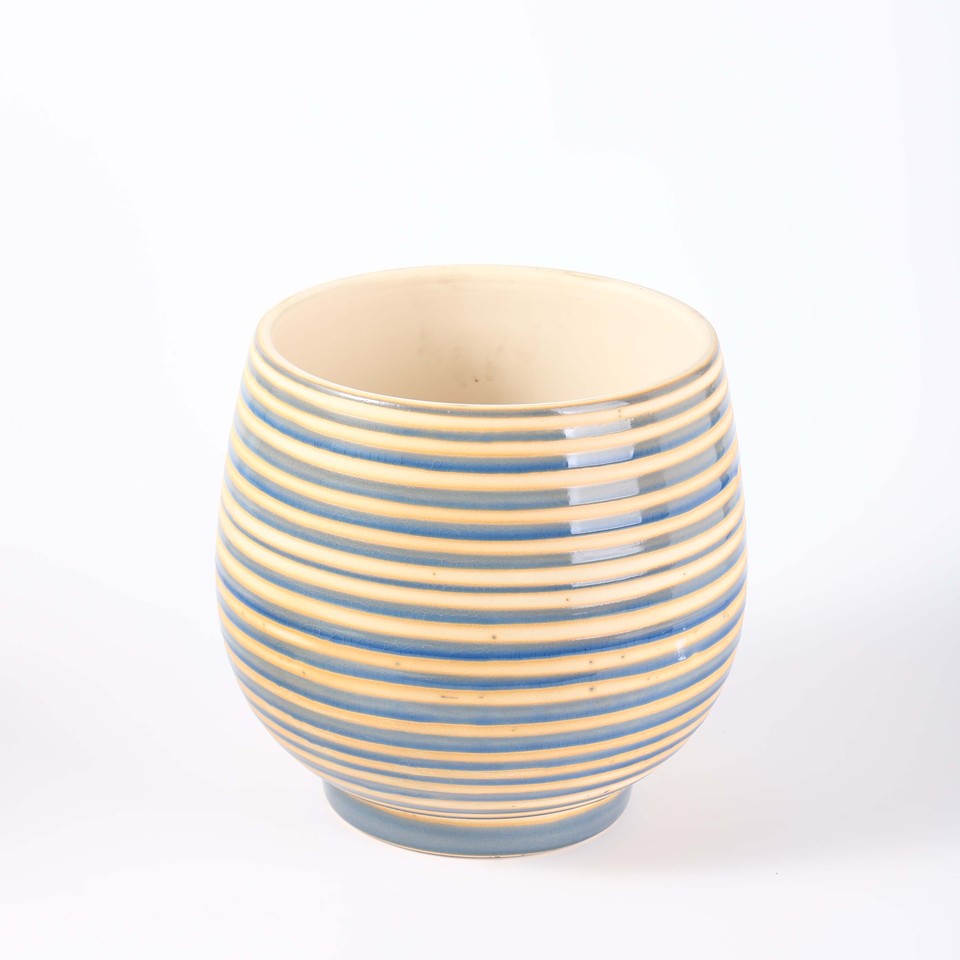 In Stock Glazed Indoor Ceramic Flower Pot Striped Planters Compote For Garden Or Home Use