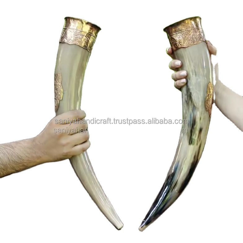 | Product Name | Medieval drinking horn with brass rim with leather holder |