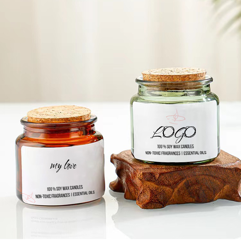 Private Label 3oz Mini Amber Green Glass Candle Jars Holders For Candle Making With Cork Lid