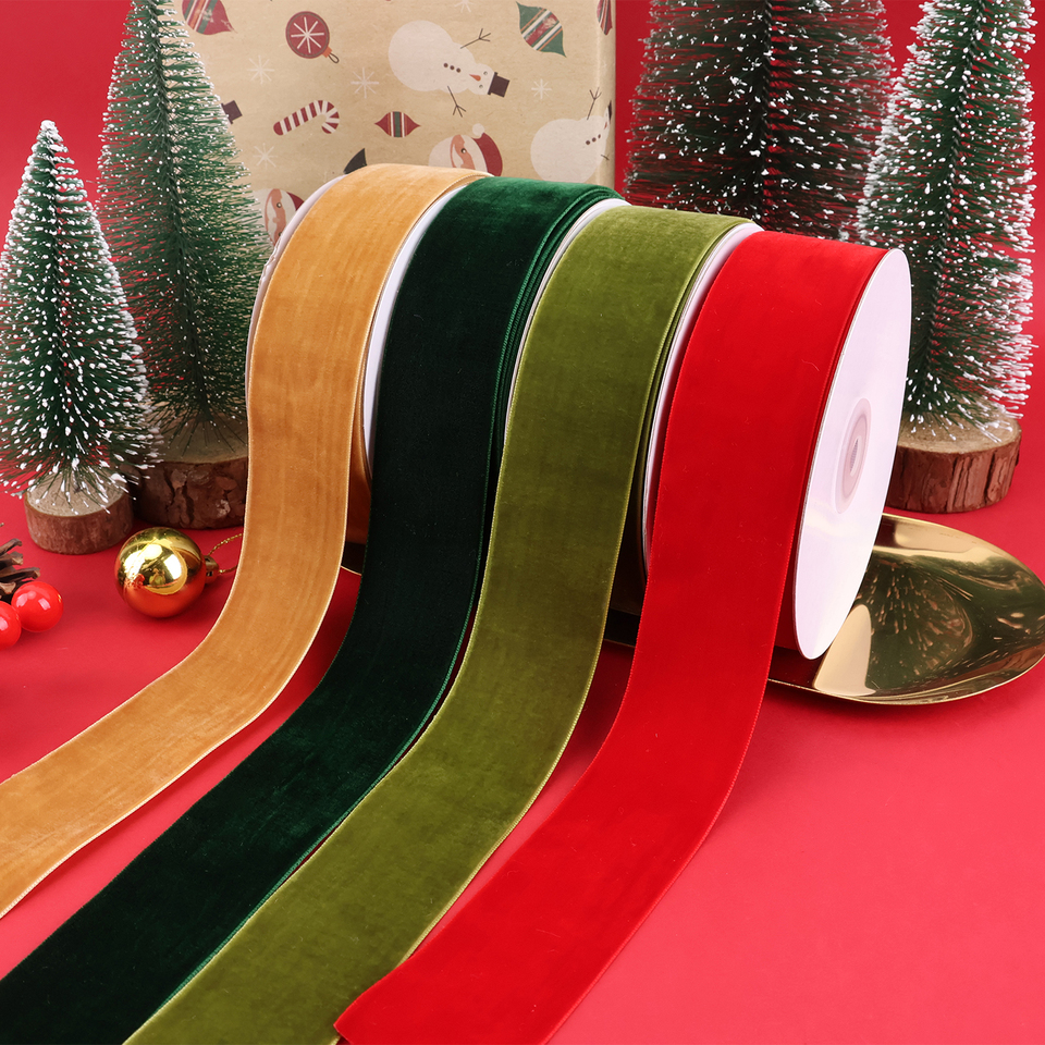 High Quality Christmas Red Green Velvet White Ribbon 3.8cm Fast Shipping For Gift Wrapping Hair Bows Wedding & Party Decorations