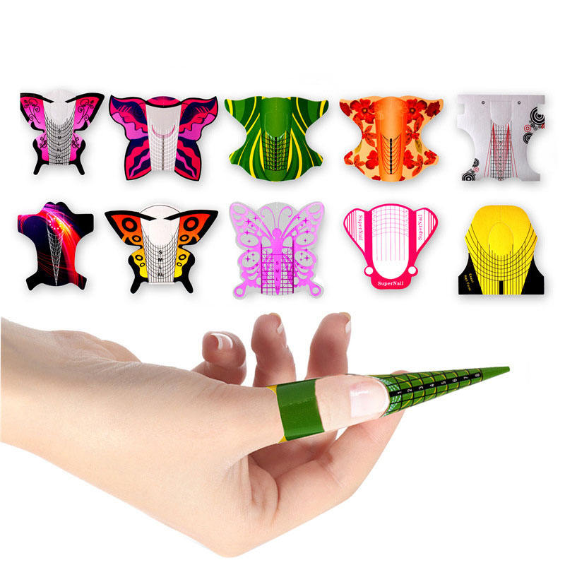 20pcs/100pcs Butterfly Shape Colorful Nail Extension Paper Manicure Diy Beauty Salon Double Acrylic Nail Form For Tips Extention