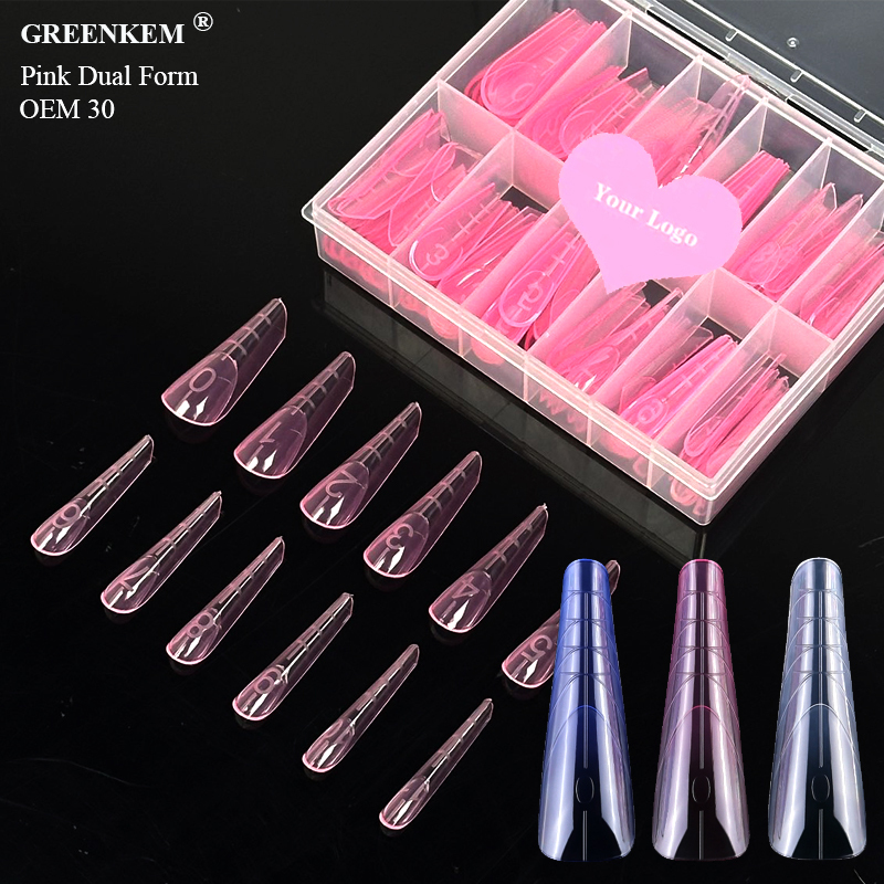 Private Label 150 Tips Box Pink Dual Nail Forms Tips Clear Professional Nail Extensions French Dual Form Nail Tips