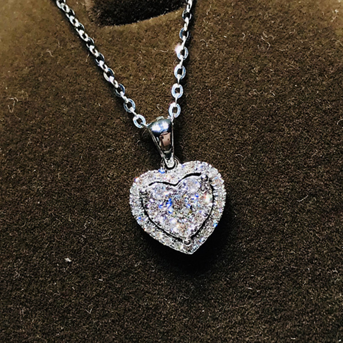 Caoshi Hot Valentine's Day Jewelry Gifts Heart Pendant Necklaces Women 18inch Cubic Zirconia Lover Girlfriend Ladies Necklaces
