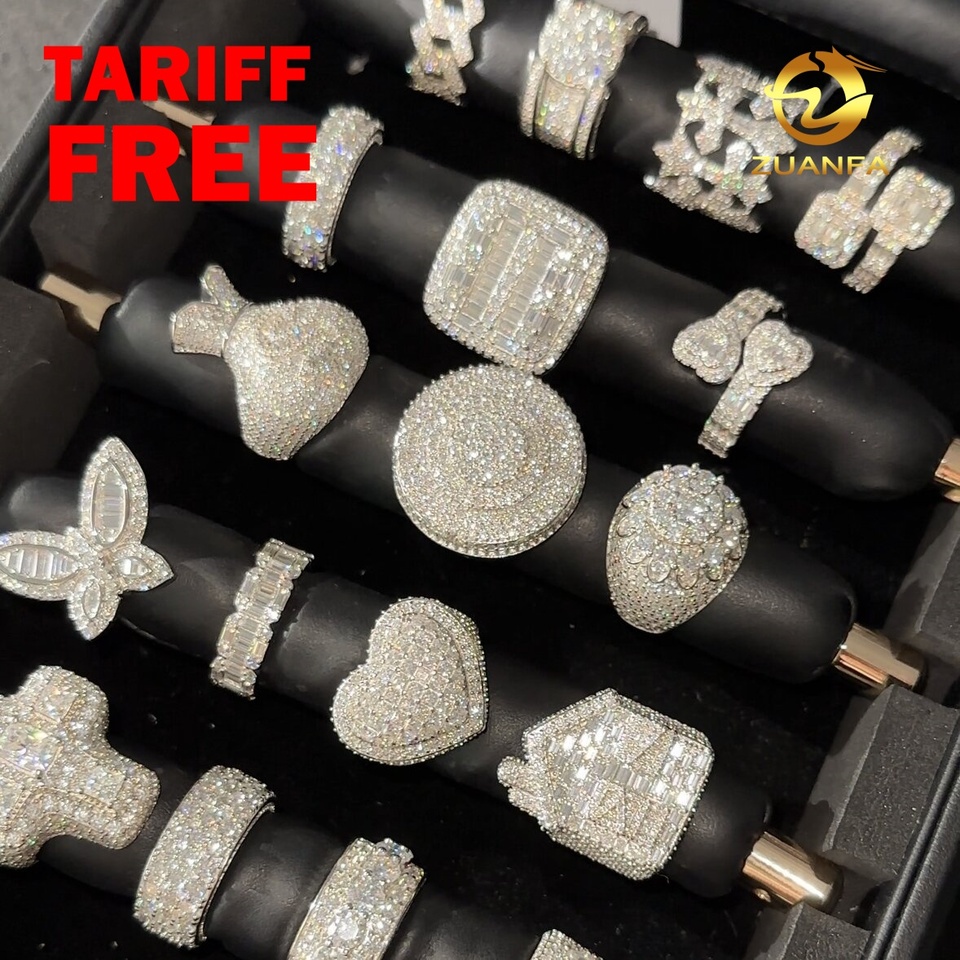Ready To Ship Iced Out Jewelry Moissanite Hip Hop Ring 925 Sterling Silver Men Diamond Ring Pass Diamond Tester