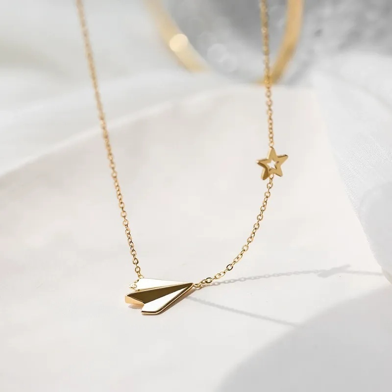 Wholesale Bulk 18k Gold Plated Stainless Steel Jewelry Dainty Small Plane Pendant Star Charm Clavicle Chain Airplane Necklace