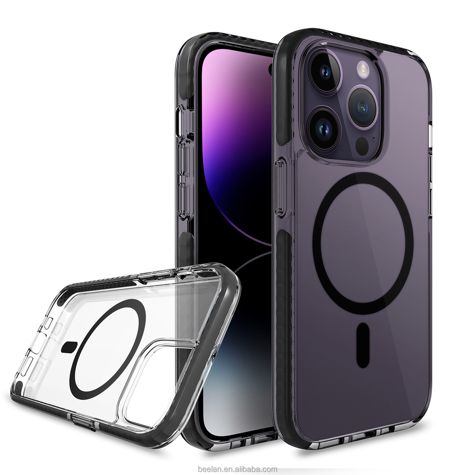 Bsci Supplier Stock Clear Transparent Hybrid Silicone Pc Tpu Tpe Magnetic Phone Case For Iphone 14 /13 /12 Pro Max