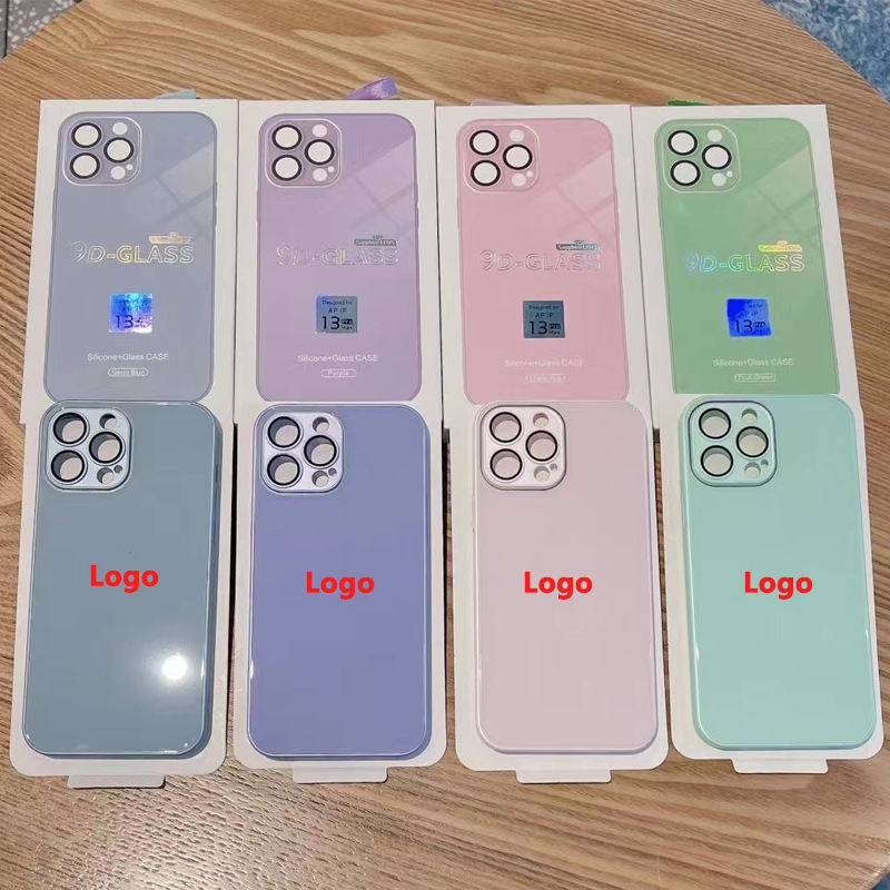 Glossy Case Cover For Apple Iphone 14 13 11 12 Pro Max Tempered Glass Case Hard Back Cover Phone Camera Lens Film Protection