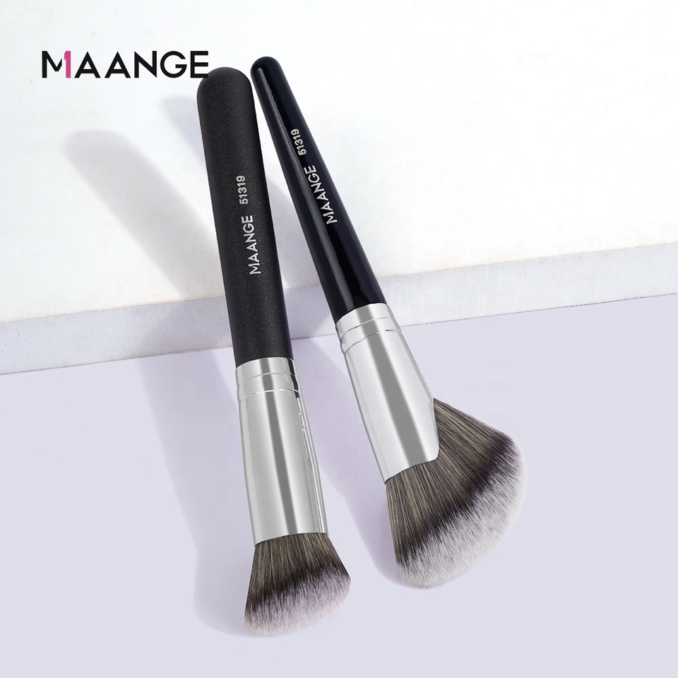 For Maange 2pcs Foundation Concealer Cosmetic Makeup Brush Set Black Wooden Handle Wholesale Durable Nylon For Face Application
