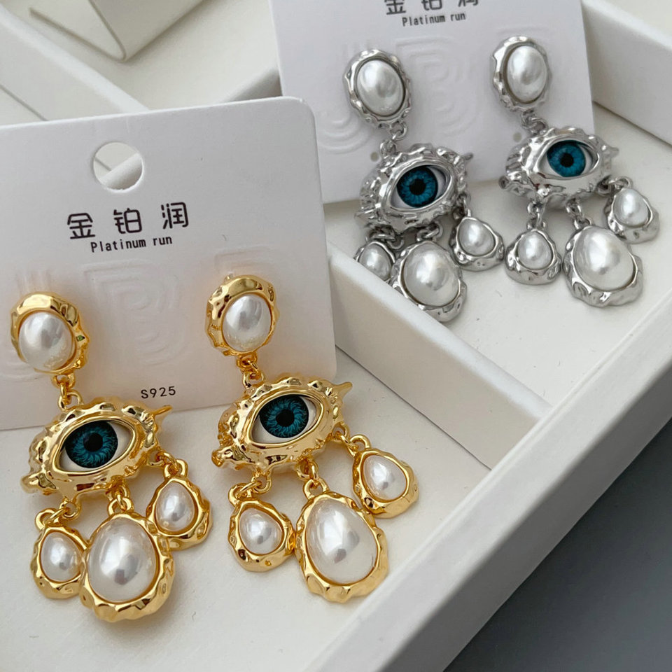 Latest Lady's Exaggerated Retro-style Big Eye Pearl Drop Earrings.
